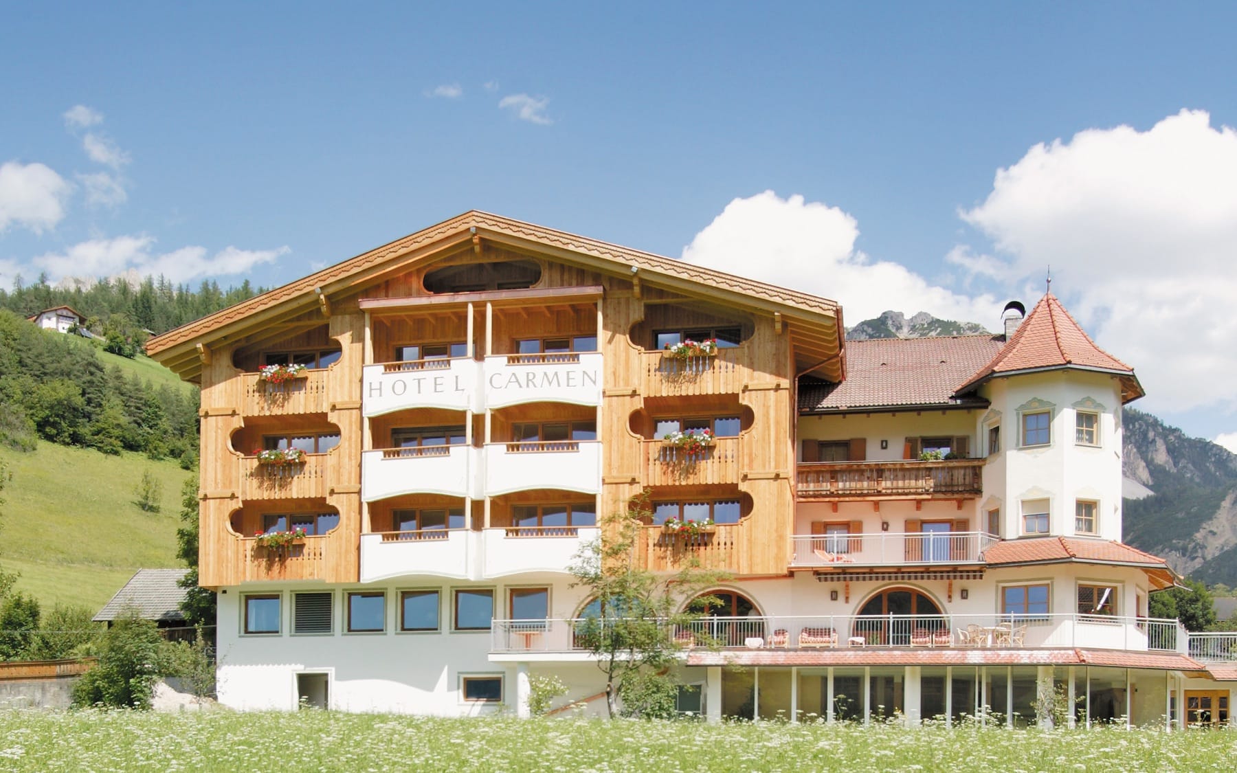 The history of Hotel Mareo as well as the Clara family relationship with the world of hospitality began in 1968. This was the year in which Pire Clara bought the small holiday home “Ciasa Carmen” that he would transform, with dedication and sacrifice, into the Hotel Carmen in San Vigilio di Marebbe. Immediately after, Pire married Caterina Ellecosta, with whom he had three children: Lucia, Filippo and David. The Hotel Carmen became a popular destination for people staying in San Vigilio over the years, which allowed them to expand and renovate it several times. Guests witnessed a constant improvement in services owed to the Clara family's wish for innovation and listening to the needs of their guests.