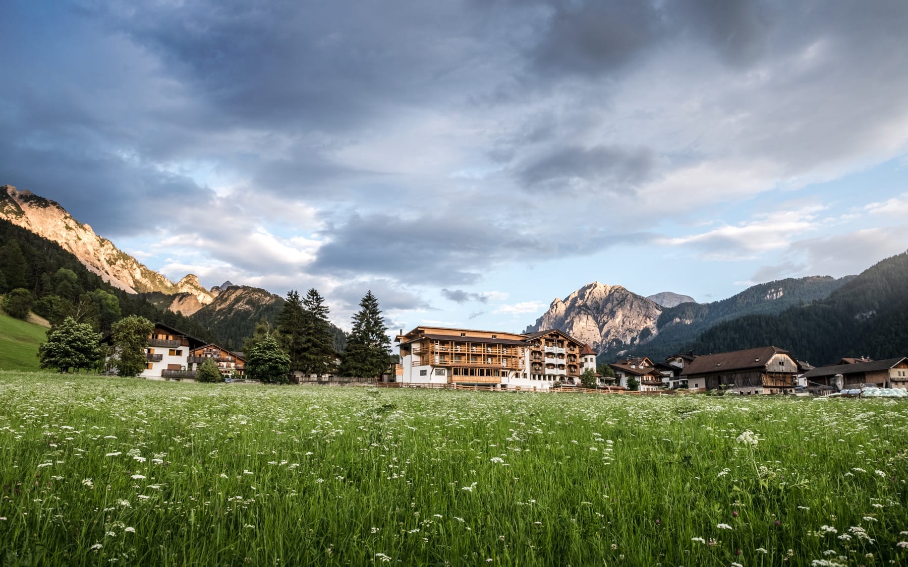 Whether you're looking out from the balcony of your room, relaxing in the warm pool water, enjoying one of the many culinary delights or having a coffee in the garden, you will be constantly surrounded by idyllic natural views. The imposing Piz da Peres, Sas de Crosta and Monte Paraccia, the fir and larch forests of the Piz de Plaies and a splendid view of the village delight your every morning and evening.