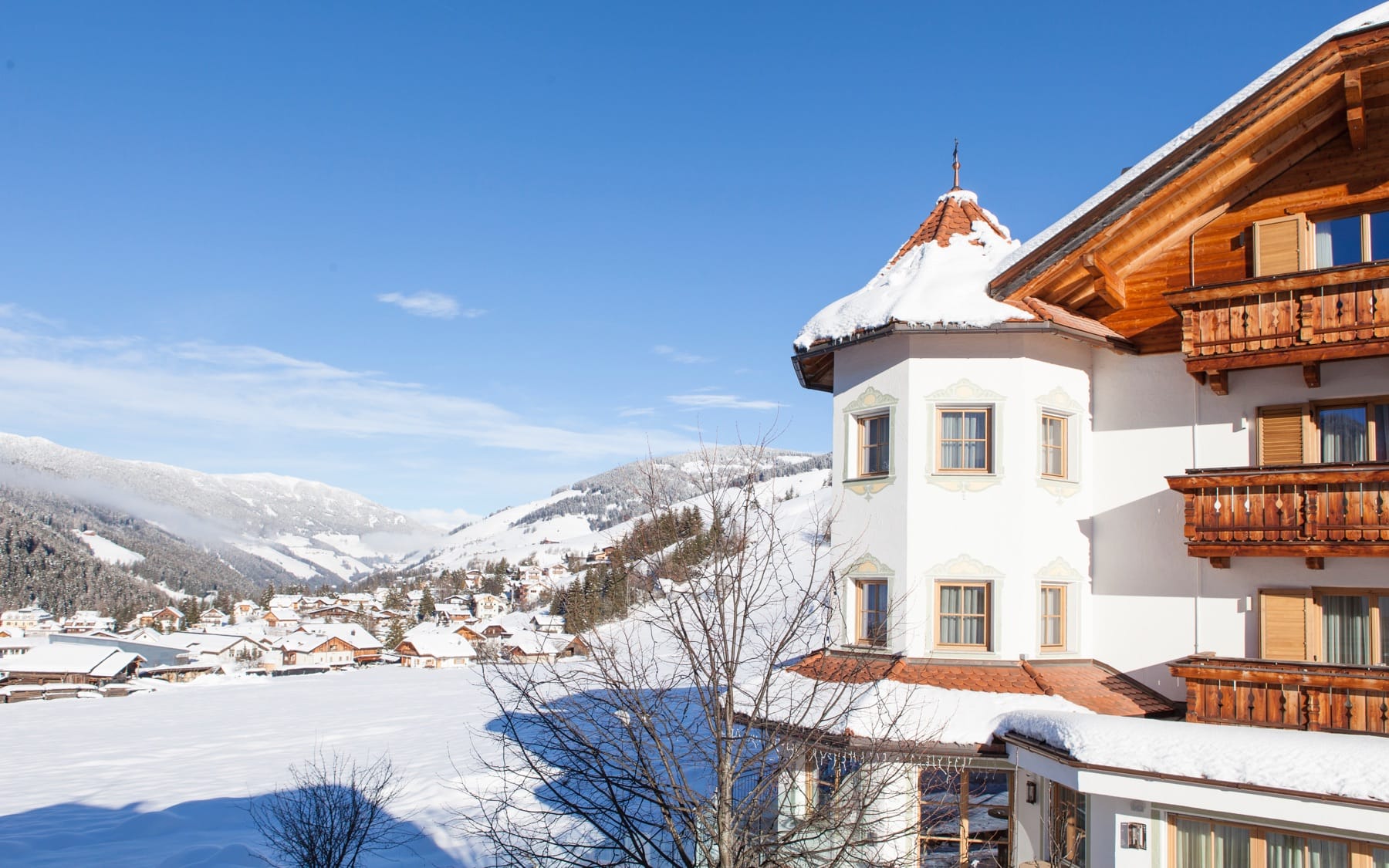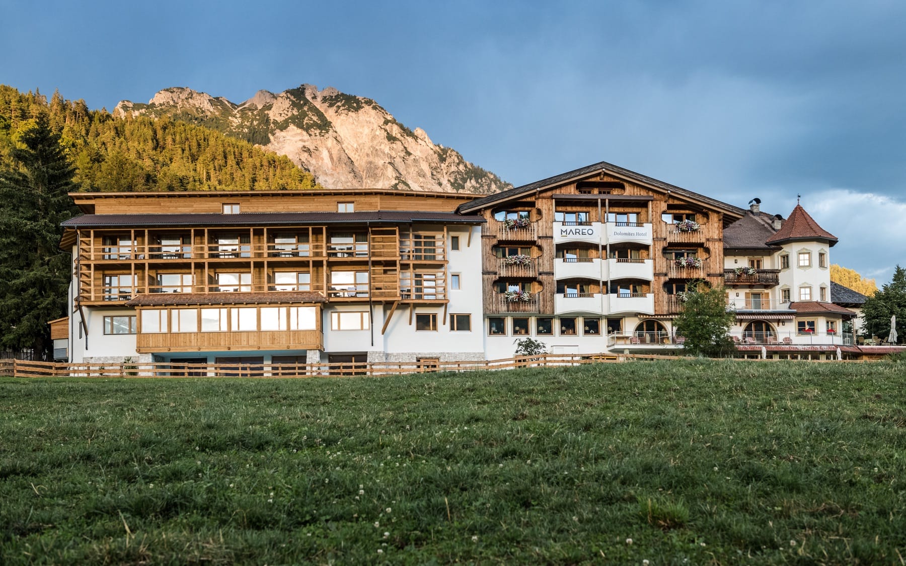 At the foot of the Kronplatz, surrounded by bright green meadows in summer and by romantic snow in winter, the Hotel Mareo Dolomites is in a strategic and privileged position, overlooking the town of San Vigilio di Marebbe.